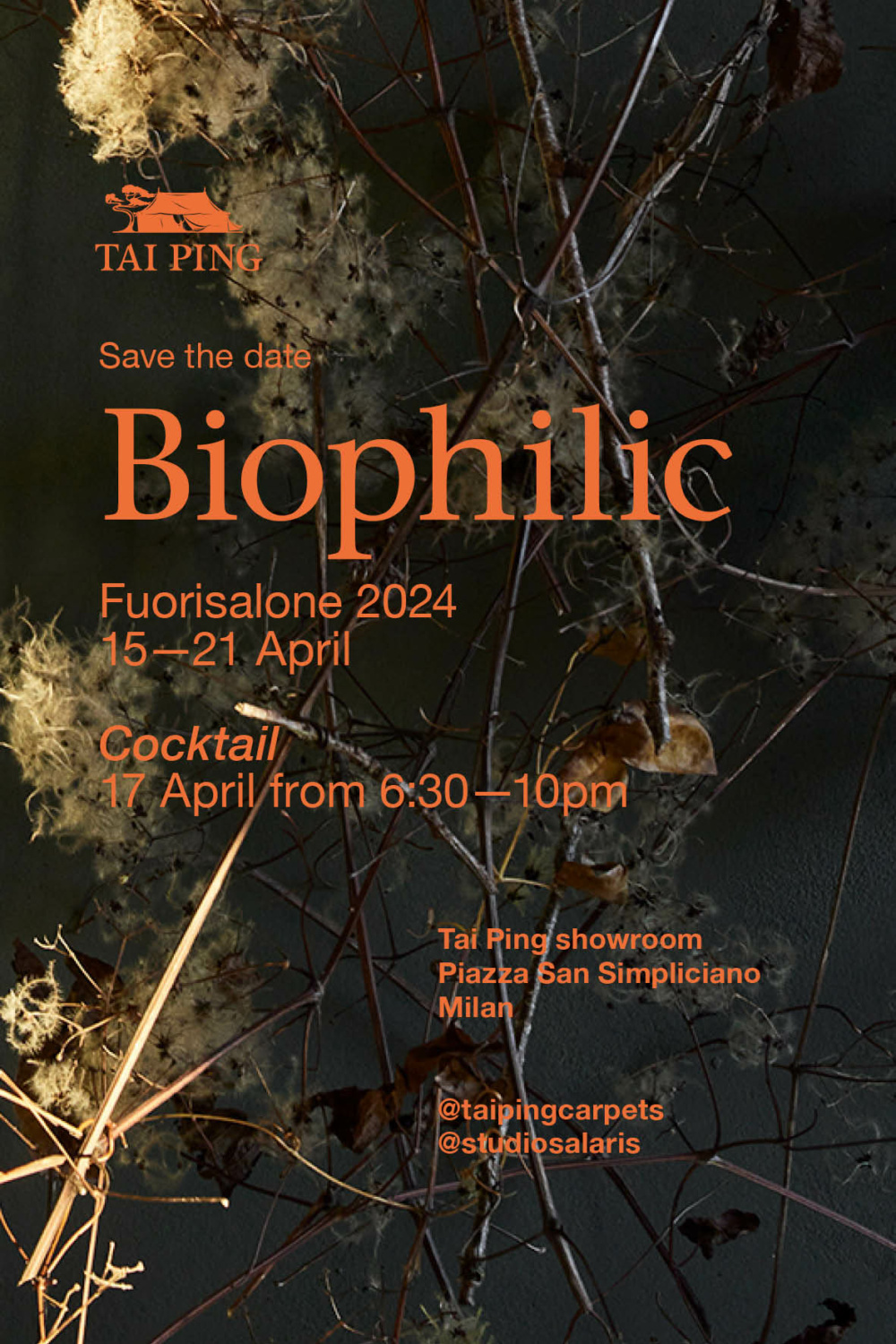 During Fuorisalone in Milan, Tai Ping will proudly present the Biophilic Program through an immersive installation by Italian agency Studio Salaris to take place in Milan's showroom.