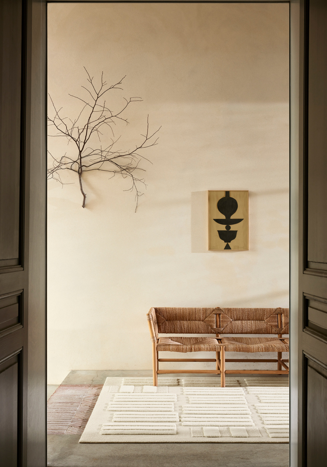 The Biophilic Series introduces eight hybrid-tufted carpets, each one a plush testament to elegant simplicity. Neutral palettes with subtle nuances lend themselves to geometric designs, creating accessible, adaptable pieces. The series, rendered primarily in wool with touches of flax, bamboo, felted wool and jute to introduce contrasting sheen, plays with the concepts of light and reflection. Rough and irregular patches communicate hand gestures of artisanal techniques, imbuing each piece with a wild authenticity.