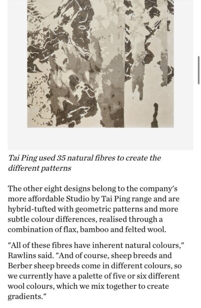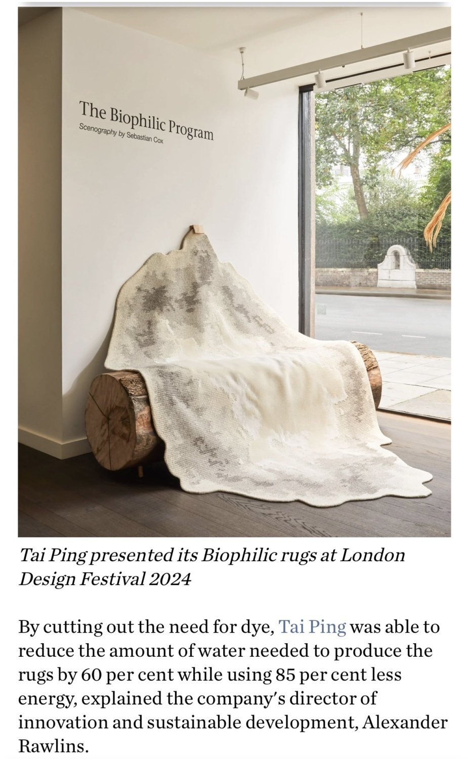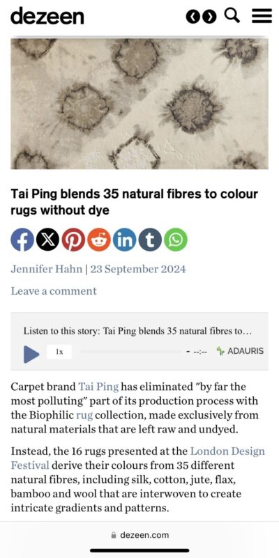 UK online magazine Dezeen reports on the Biophilic Program by Tai Ping following the launch of the program during London Design Festival 2024.